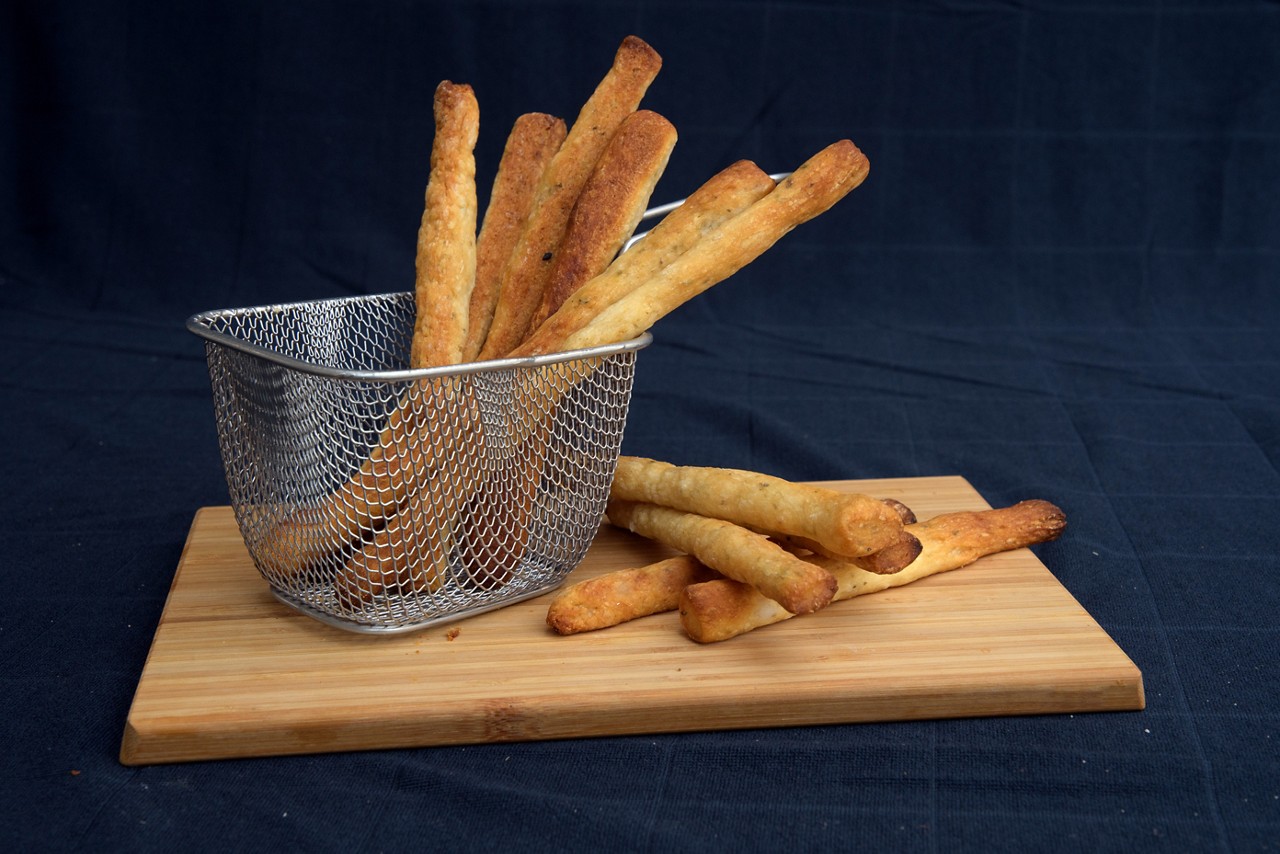 - Roll the dough into lots of long thin shapes, the size of breadsticks.
