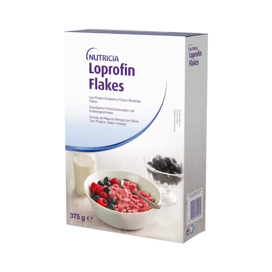 Loprofin Cereal Flakes Strawberry is a Food for Special Medical Purposes, for the dietary management of inherited metabolic disorders and other conditions requiring a low protein diet and must be used under medical supervision.