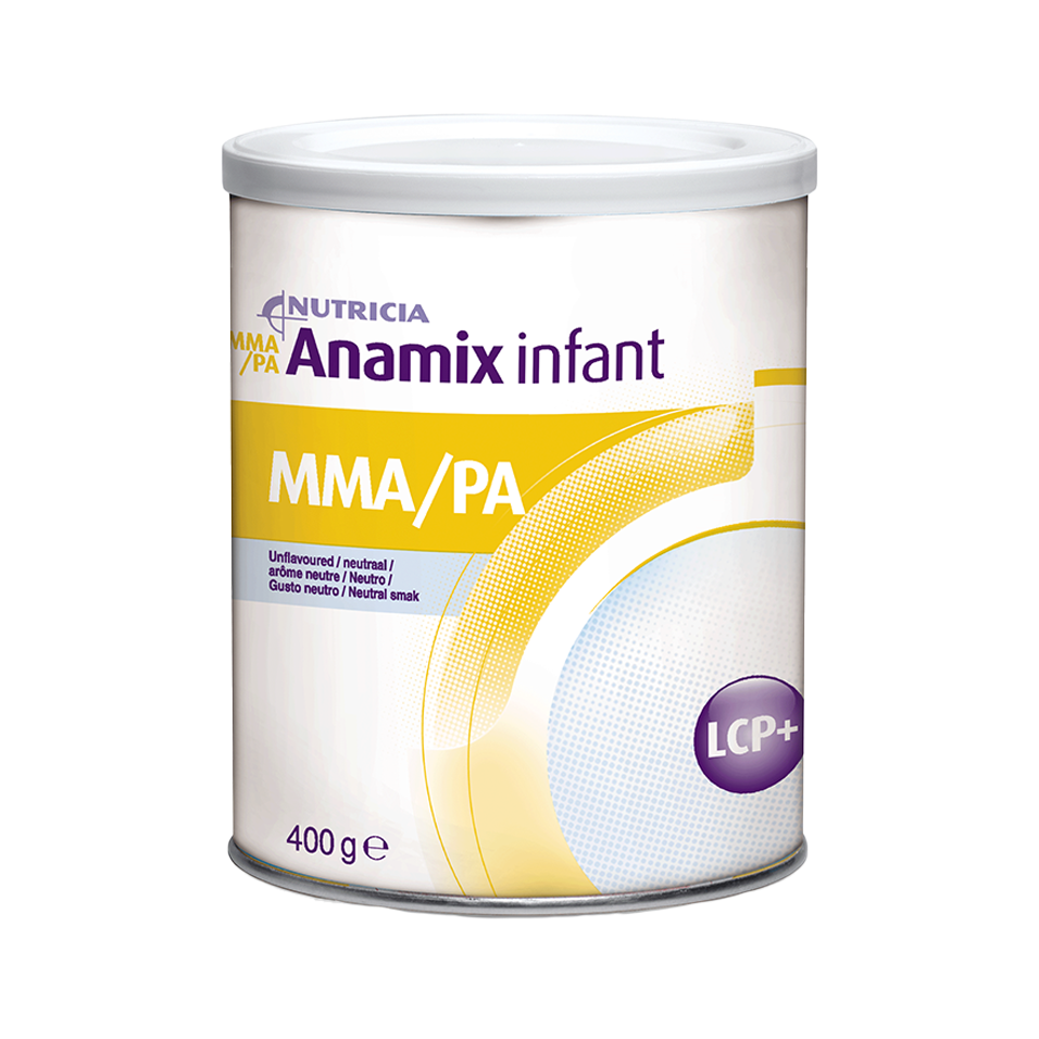 MMA/PA Anamix infant is a Food for Special Medical Purposes for the dietary management of proven methylmalonic or propionic acidaemia (MMA/PA) in infants from birth to 12 months and as a supplementary feed up to 3 years. MMA/PA Anamix infant is an amino acid-based methionine-free, threonine-free and valine-free, low isoleucine powdered feed containing essential and non-essential amino acids, carbohydrate, fat, fibre, vitamins, minerals and trace elements.