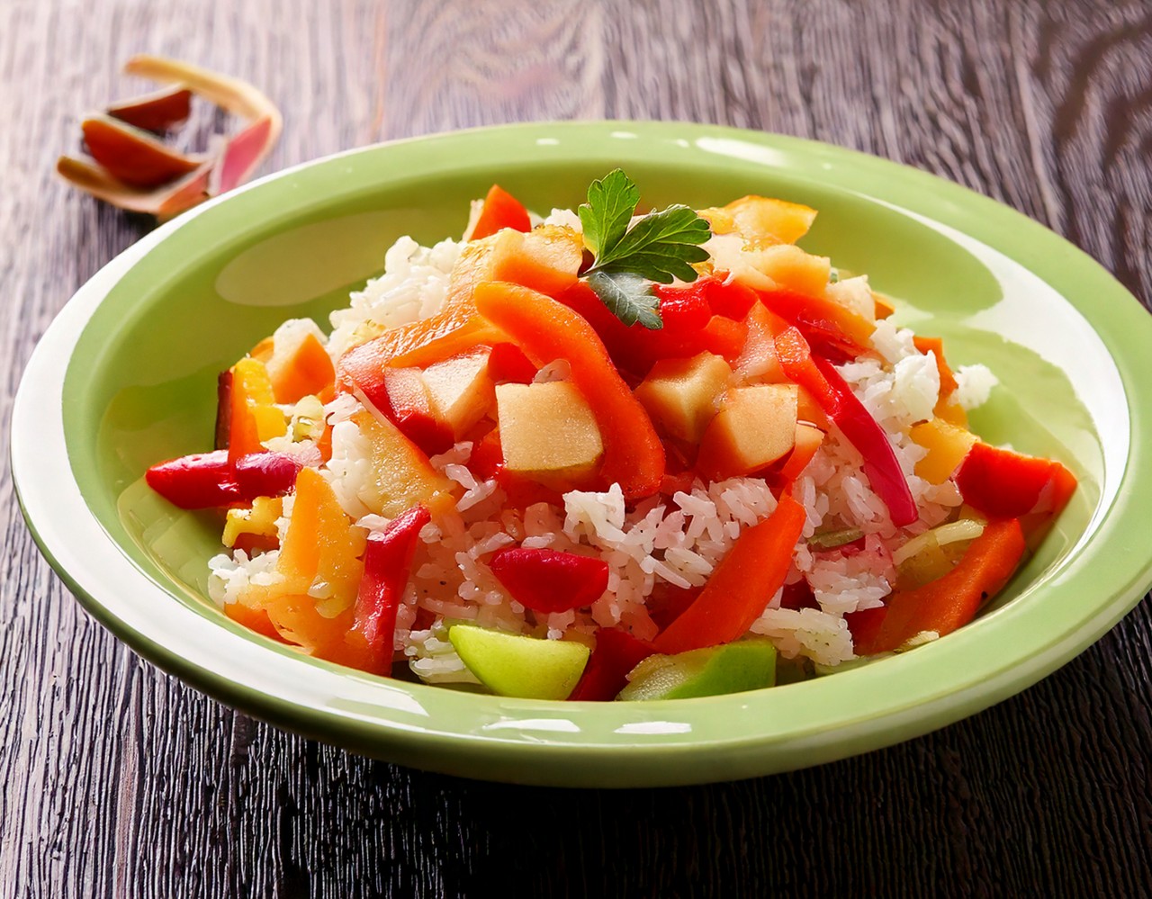 7. Mix again, season and serve garnished with red peppercorns and chopped basil.