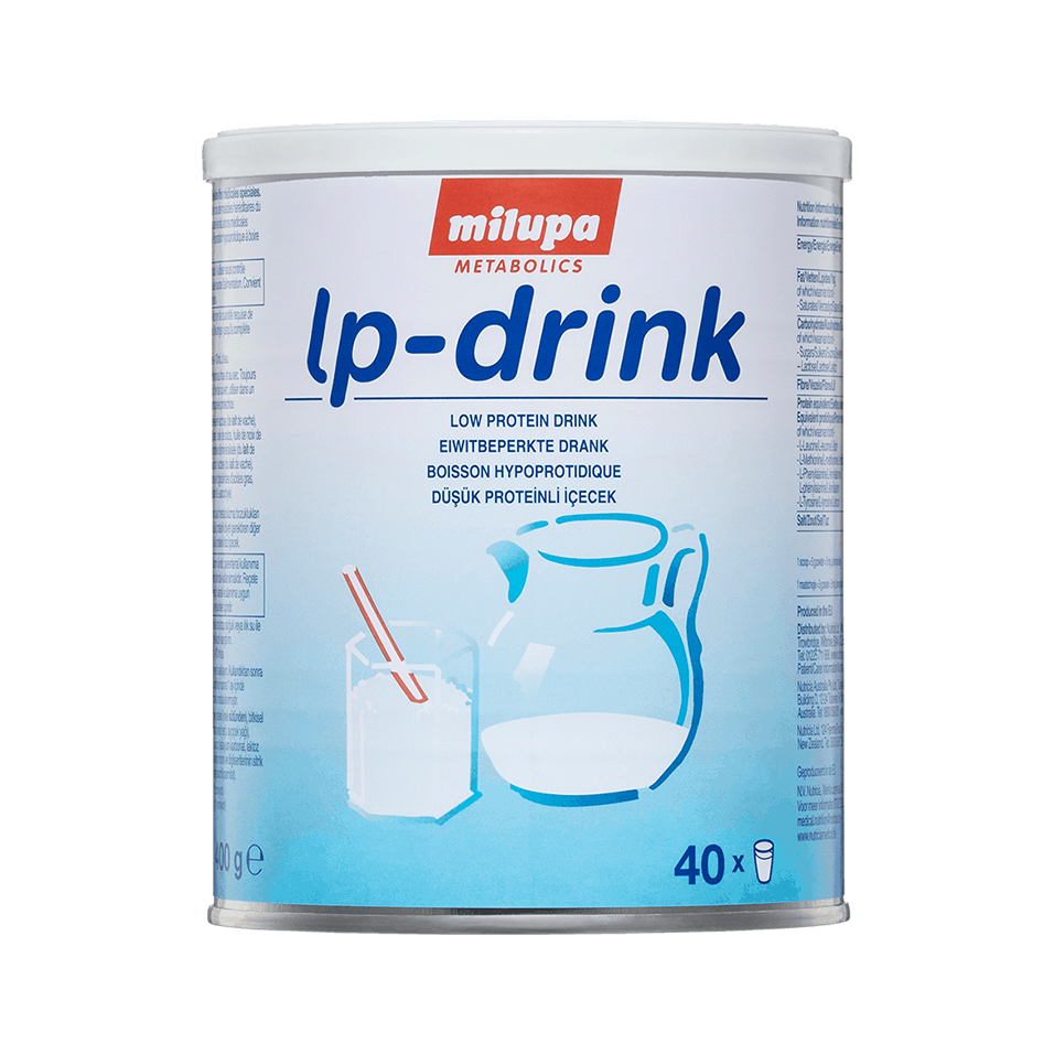 Milupa lp-drink é uma bebida de baixo teor proteico, em pó. Alimento para fins medicinais específicos para a gestão nutricional de doenças hereditárias do metabolismo (ex. PKU, MSUD) ou outras que necessitem de uma dieta de baixo teor proteico.